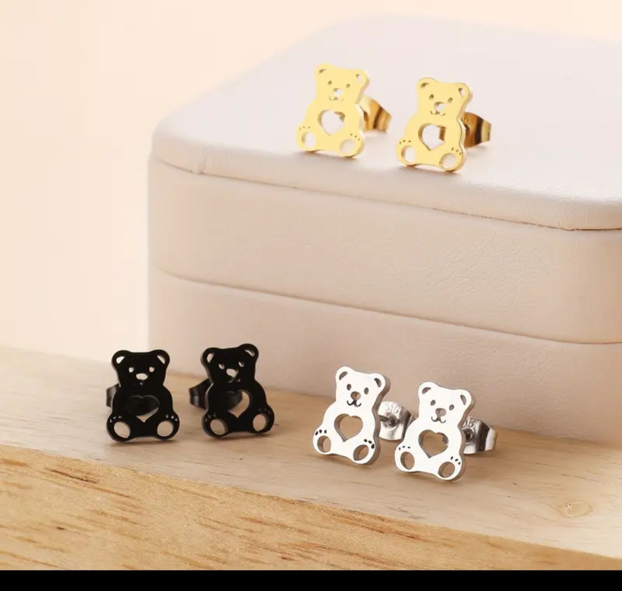 ピアス レディース レディースピアス 両耳 両耳用 クマ くま 熊 くまさん クマさん くまちゃん クマちゃん ゴールド シルバー ブラック ステンレス アレルギーフリー シルエット アニマル 動物 ハート