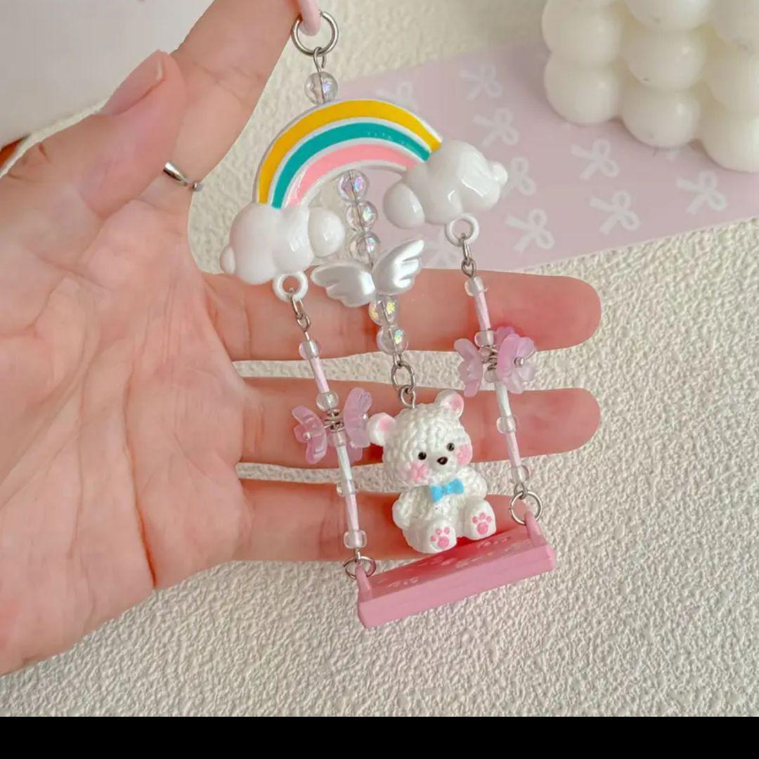 バッグチャーム キーホルダー 熊 クマ くま ブランコ ゆらゆら 揺れる 白